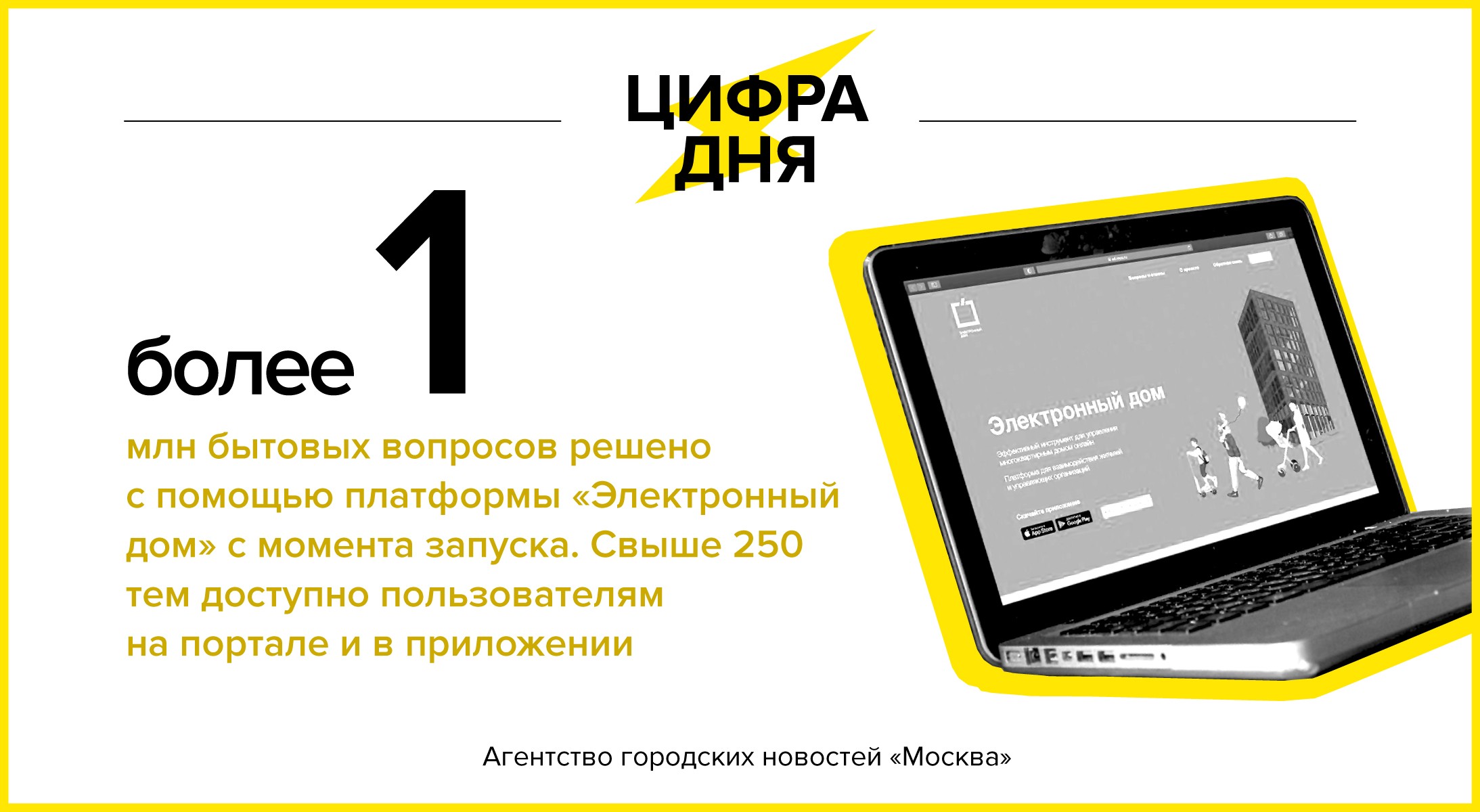 Цифра дня 25 апреля: Более миллиона бытовых вопросов решено с помощью платформы «Электронный дом»
