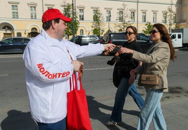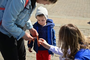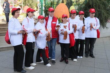 «Волонтеры Победы» в первый день международной акции «Георгиевская ленточка» в преддверии Дня Победы.
