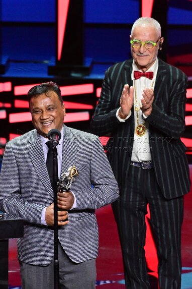Режиссер Прадип Курба (Индия), получивший Золотого Святого Георгия за лучший фильм «Элизиум» (The Elysian Field) и Серебряного Святого Георгия за лучшую режиссерскую работу за фильм «Элизиум» (The Elysian Field). Церемония закрытия 47-го Московского международного кинофестиваля (ММКФ) в кинотеатре «Россия» на Пушкинской площади.