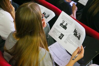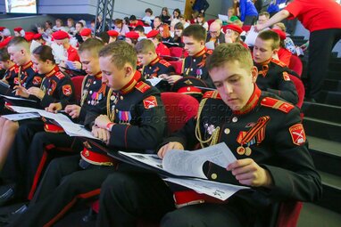 Учащиеся Кадетского корпуса Георгия Жукова и юнармейцы. Международная патриотическая акция «Диктант Победы» в национальном центре «Россия».