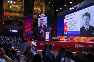 Герой России Владислав Головин (справа). Федеральный просветительский марафон «Знание.Первые» российского общества «Знание», который проходит с 28 по 30 апреля.