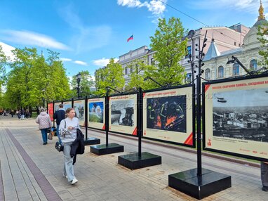 Совместный фотопроект медиахолдинга «Москва Медиа» и Музея Победы к 80-летию Великой Победы «Москва: сохраняя память, создавая будущее» на Чистопрудном бульваре.