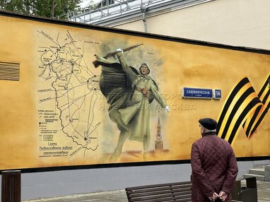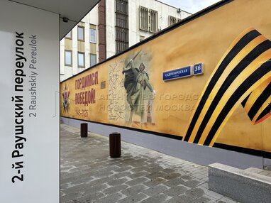 Граффити ко Дню Победы на трансформаторной подстанции на ул. Садовническая в центре Москвы.
