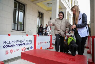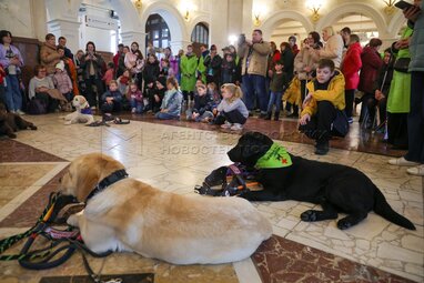 Международный день собак-поводырей на Северном речном вокзале Москвы.