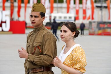 Патриотическая акция «Вальс Победы» у арки Главного входа на ВДНХ в преддверии 80-летия Победы в Великой Отечественной войне.