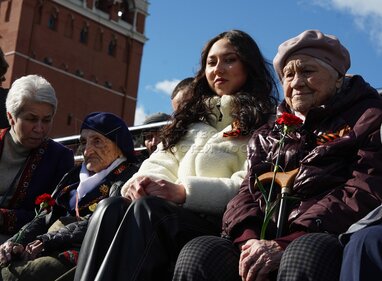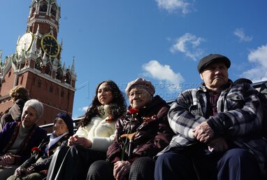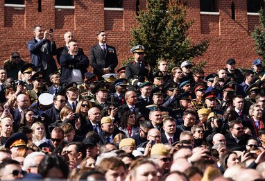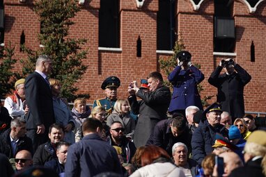 Режиссер Оливер Стоун (в центре на втором плане). Парад в честь 80-й годовщины Победы в Великой Отечественной войне на Красной площади.