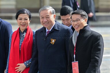 Генсек Компартии Вьетнама То Лам с супругой Нго Фыонг Ли. Парад в честь 80-й годовщины Победы в Великой Отечественной войне на Красной площади.