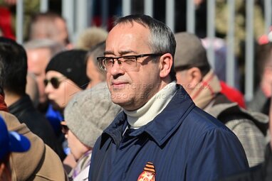 Первый заместитель председателя комитета Государственной Думы РФ по экологии, природным ресурсам и охране окружающей среды Вячеслав Фетисов. Парад в честь 80-й годовщины Победы в Великой Отечественной войне на Красной площади.
