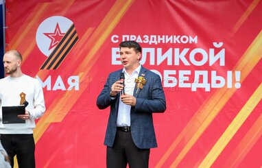 Депутат Мосгордумы, председатель Московского городского отделения Всероссийской общественной молодежной организации «Всероссийский студенческий корпус спасателей» Максим Джетыгенов. Праздничные мероприятия в Москве в честь 80-й годовщины Победы в Великой Отечественной войне.