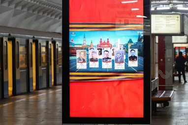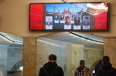 Трансляция Всероссийской акции «Бессмертный полк» на медиаэкранах в метро в честь 80-й годовщины Победы в Великой Отечественной войне.