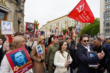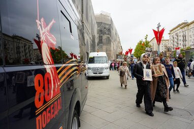 Трансляция Всероссийской акции «Бессмертный полк» на медиаэкранах в честь 80-й годовщины Победы в Великой Отечественной войне.