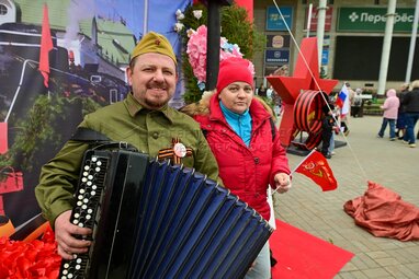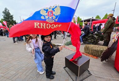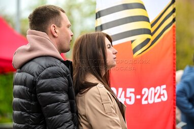Горожане и гости столицы у мемориального комплекса «Площадь Мужества» во время празднования 80-й годовщины Победы в Великой Отечественной войне в Измайловском парке.