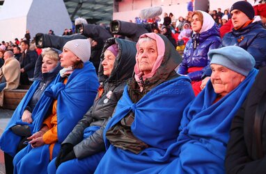 Народная артистка России Светлана Крючкова, народная артистка СССР Александра Пахмутова и оперный певец Ильдар Абдразаков (слева направо). Концерт Великой Победы под руководством народного артиста СССР, Героя труда РФ Юрия Башмета в парке «Зарядье».