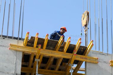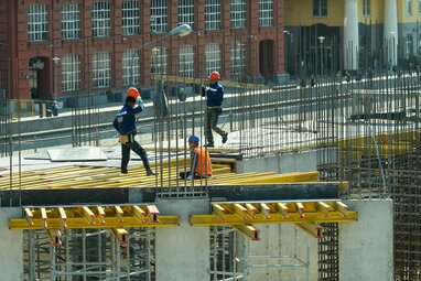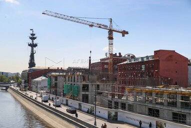 Строительные работы проекта комплексного развития территории на первой линии Болотной набережной рядом с арт-пространством ГЭС-2 по программе реорганизации территории бывшей кондитерской фабрики «Красный Октябрь».