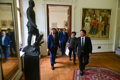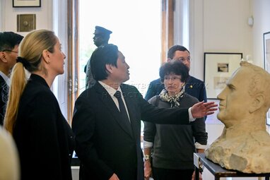 Ректор ЦАИИ Линь Мао (слева) и исполняющий обязанности президента РАХ, скульптор Василий Церетели (второй справа). Подписание соглашения о сотрудничестве между Российской академией художеств (РАХ) и Центральной академией изящных искусств (ЦАИИ) Китайской Народной Республики (КНР).