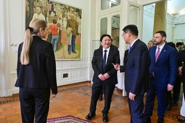 Ректор ЦАИИ Линь Мао (слева) и вице-президент РАХ Татьяна Кочемасова (вторая справа). Подписание соглашения о сотрудничестве между Российской академией художеств (РАХ) и Центральной академией изящных искусств (ЦАИИ) Китайской Народной Республики (КНР).