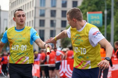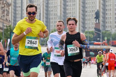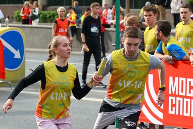 Директор Департамента устойчивого развития и социальной ответственности (РФС) Алексей Смертин (слева). Возрожденная легкоатлетическая эстафета по Садовому кольцу на дистанцию 15 км.