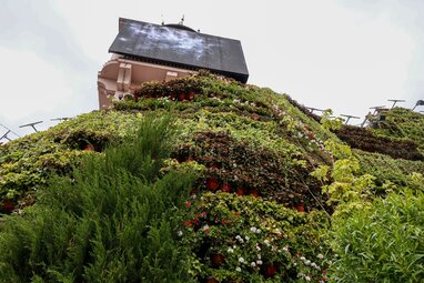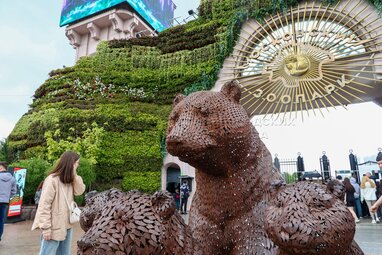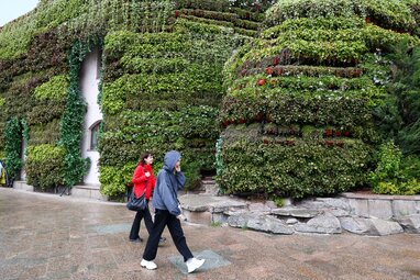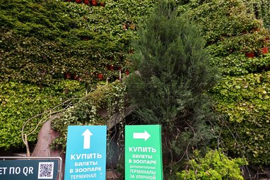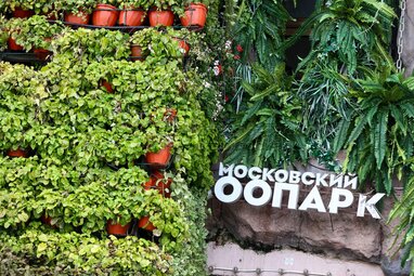 Вертикальный оазис на входе в Московский зоопарк. Украшение столицы к фестивалю «Сады и цветы».