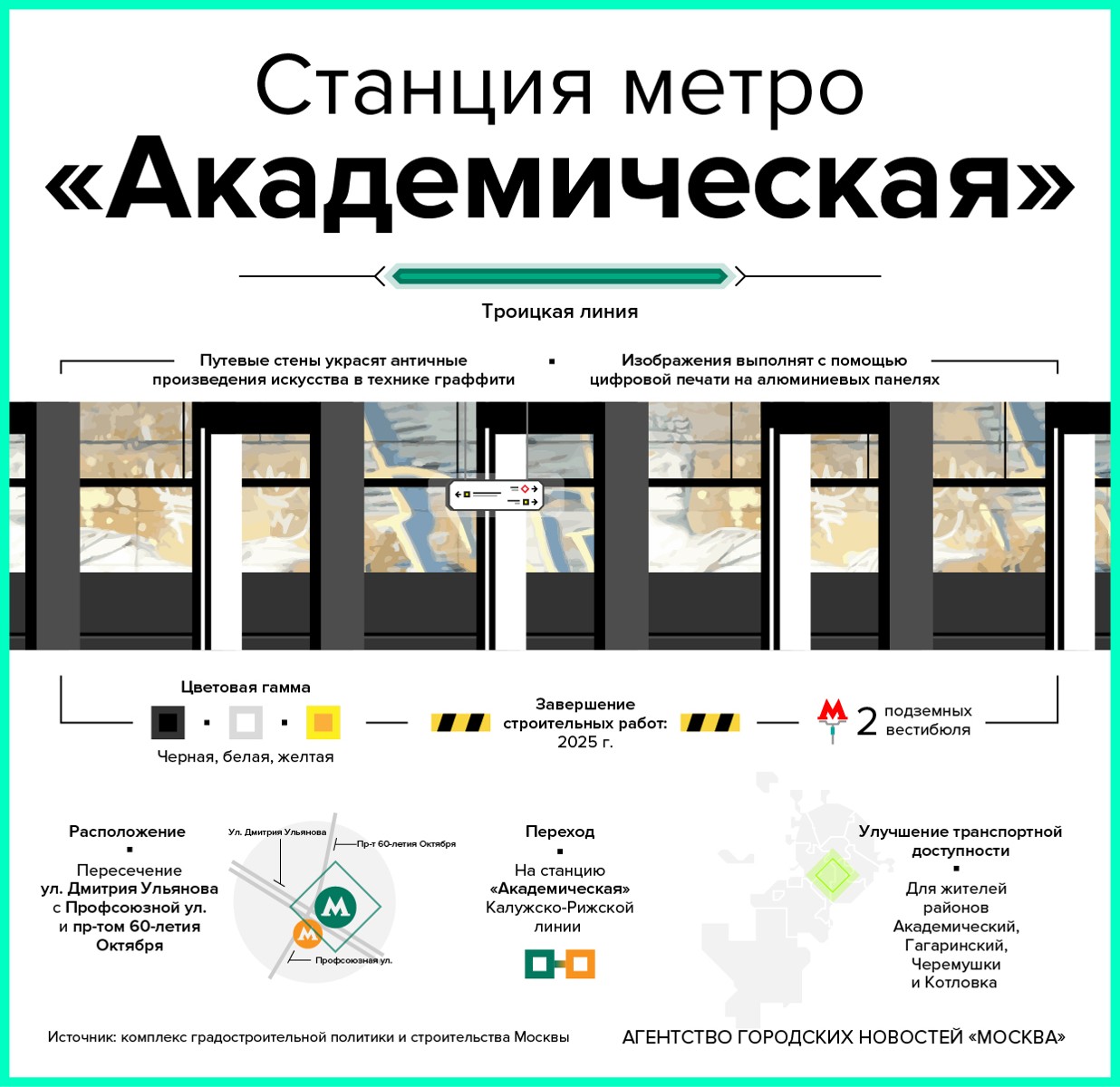 Строящаяся станция «Академическая» Троицкой линии метро.
