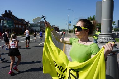 Президент Федерации триатлона России, организатор проекта «Гонка героев» Ксения Шойгу. Всероссийский полумарафон «ЗаБег.РФ» в центре Москвы.