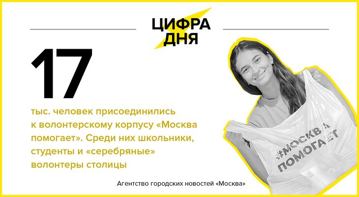 Цифра дня 30 мая: 17 тыс. человек присоединились к волонтерскому корпусу «Москва помогает».