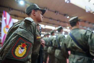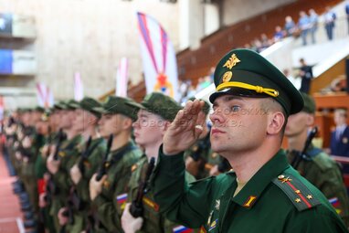 Церемония приведения к военной присяге военнослужащих спортивных рот ЦСКА в крытом легкоатлетическо-футбольном комплексе ЦСКА.