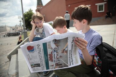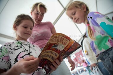 Посетители и участники XI Книжного фестиваля «Красная площадь» в Москве.