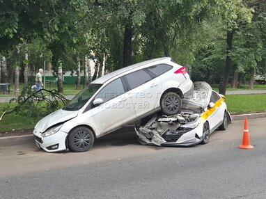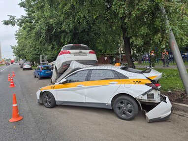 Последствия наезда фуры на припаркованные легковые автомобили и фургон «ГАЗель» на Кавказском бульваре в районе Царицыно.