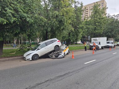 Последствия наезда фуры на припаркованные автомобили на Кавказском бульваре в районе Царицыно
