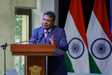 Заместитель главы миссии посольство Республики Индии в РФ Никхилеш Гири. Пресс-встреча в посольстве Индии в Москве, посвященная XI Международному дню йоги, который пройдет 21 июня 2025 года на площадке у Мичуринского сада на ВДНХ.
