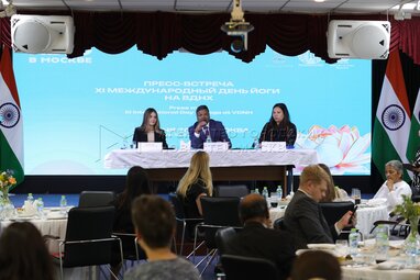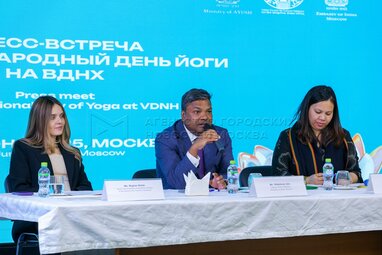 Пресс-встреча в посольстве Индии в Москве, посвященная Международному дню йоги на ВДНХ