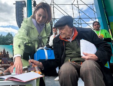 Доктор биологических наук, профессор географического факультета МГУ, телеведущий Николай Дроздов во время Международного дня йоги в рамках проекта «Лето в Москве» на ВДНХ.