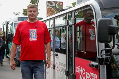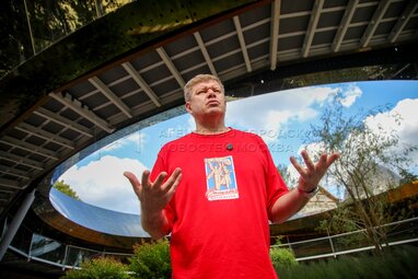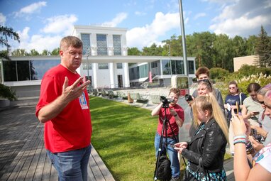 Начальник управления экскурсионной деятельности Департамента музейно-выставочной, образовательной и экскурсионной деятельности ВДНХ Олег Лобода. Презентация авторской экскурсии на электрокарах «Зеленый маршрут с Дмитрием Губерниевым» по территории ВДНХ.