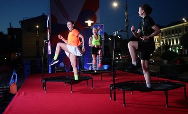 Фитнес джампинг на Кудринской площади. Ночь Московского спорта в рамках проекта «Лето в Москве».
