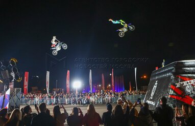 SHOW FMX Мотоциклы на фонтанной площади Парка Горького. Ночь Московского спорта в рамках проекта «Лето в Москве».