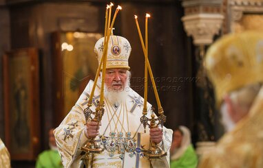 Патриарх Московский и всея Руси Кирилл провел божественную литургию в кафедральном соборном храме Христа Спасителя в праздник Владимирской иконы Божией Матери.