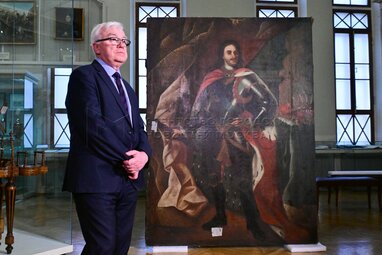 Генеральный директор Государственного исторического музея Алексей Левыкин. Передача на реставрацию двух полотен «Петр I в Саардаме» и «Портрет Петра I» из собрания исторической живописи XVIII века из коллекции Исторического музея.