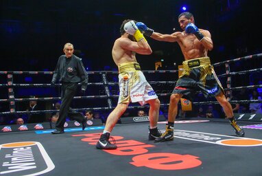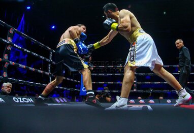 Бой Азнаур Калсынов (Россия) – Бургут Ходжабоев (Узбекистан). Вечер профессионального бокса на титул WBA Continental Gold в Международном центре бокса в Москве.