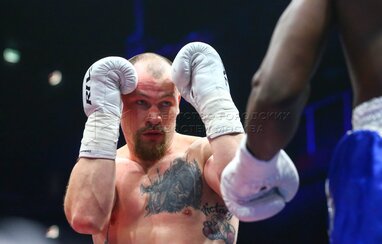 Алексей Папин (Россия) после боя с Мильяном Ровчаниным (Сербия). Вечер профессионального бокса на титул WBA Continental Gold в Международном центре бокса в Москве.