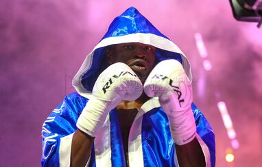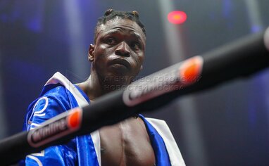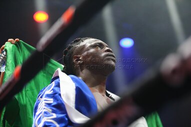 Боксер Эражадае Обаро (Нигерия) перед боем. Вечер профессионального бокса на титул WBA Continental Gold в Международном центре бокса в Москве.
