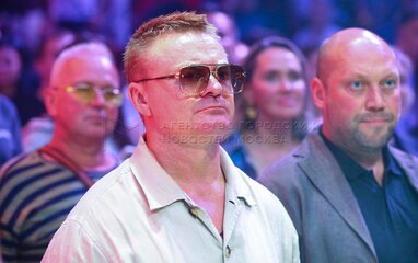 Актер Владимир Сычев во время боя Алексея Егорова (Россия) и Эражадае Обаро (Нигерия). Вечер профессионального бокса на титул WBA Continental Gold в Международном центре бокса в Москве.