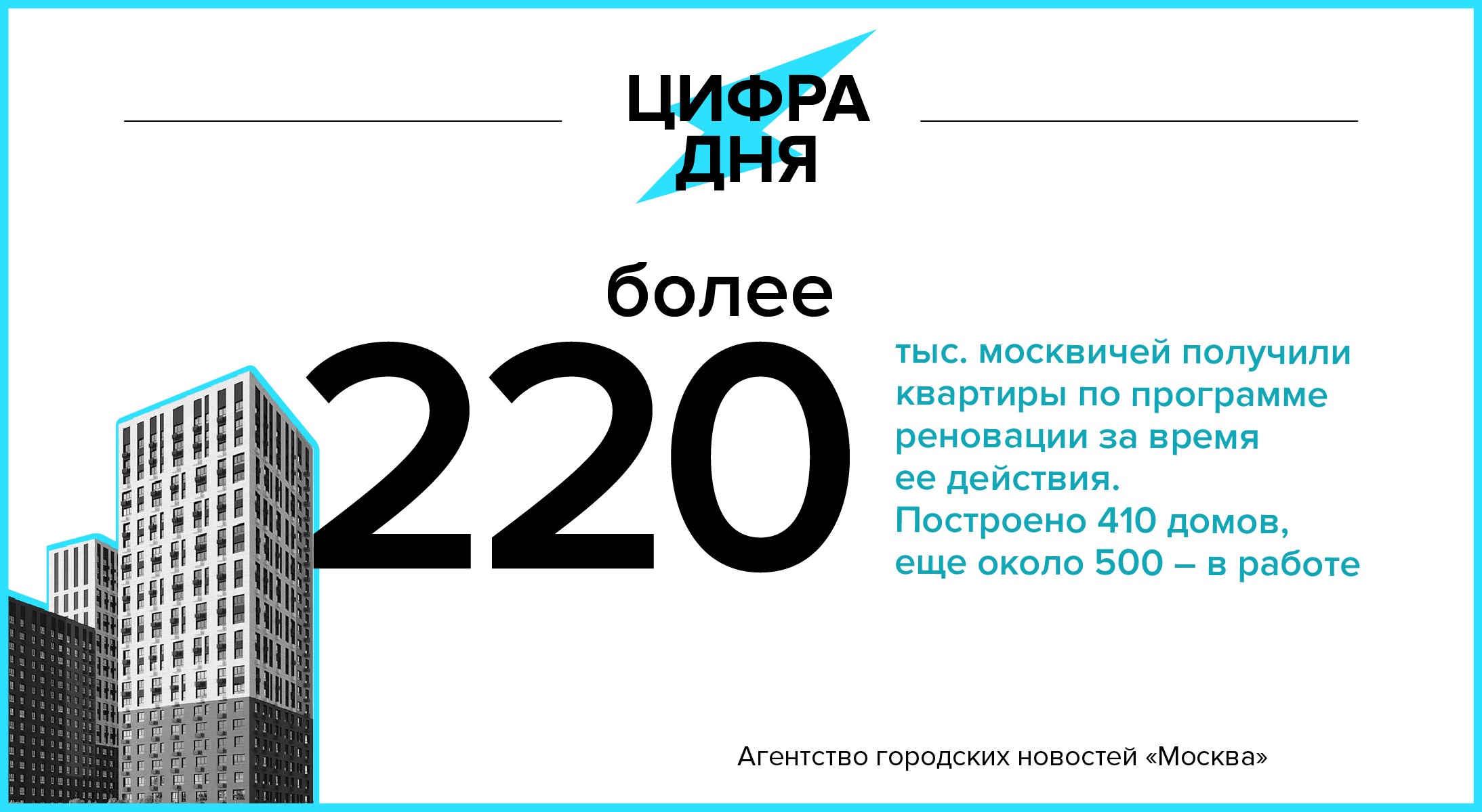 Цифра дня 4 августа: Более 220 тыс. москвичей получили квартиры по программе реновации
