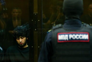 Первое заседание второго Западного окружного военного суда на выездных заседаниях в Мосгорсуде по уголовному делу о теракте в Crocus City Hall.