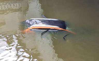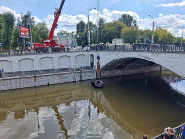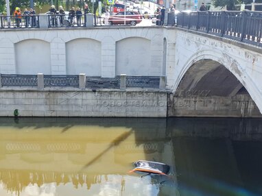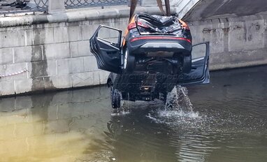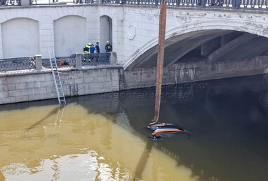Последствия падения автомобиля каршеринга в Яузу на Рубцовской набережной