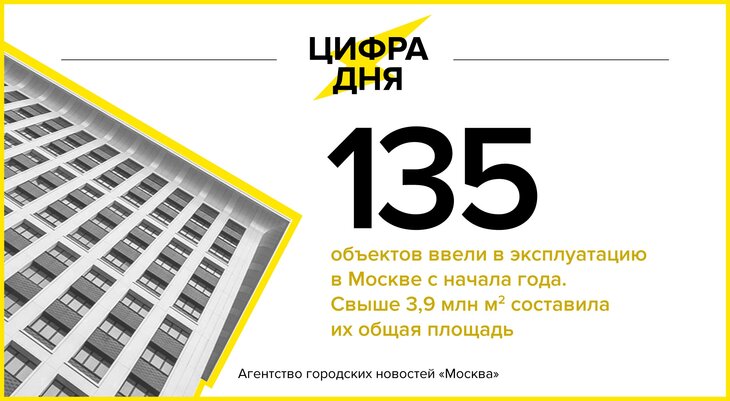 Цифра дня 19 августа: 135 объектов ввели в эксплуатацию в Москве с начала года.