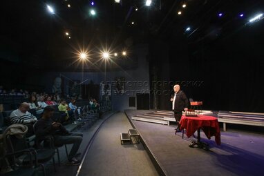 Актер театра «Эрмитаж» Сергей Бесхлебнов. Сбор труппы в московском театре «Эрмитаж» перед началом 66-го сезона.