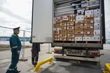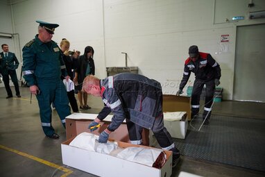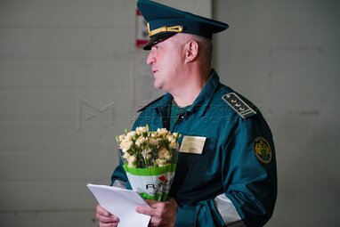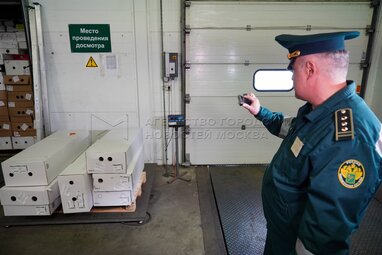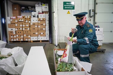 Старший государственный таможенный инспектор Ленинградского таможенного поста Московской таможни Станислав Полинкевич. Оформление цветочной продукции на Ленинградском таможенном посту Московской таможни в преддверии Дня знаний.