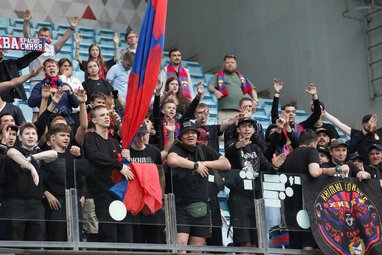Болельщики ЦСКА во время гала-матча сборной ЦСКА с командой друзей вратаря Игоря Акинфеева на стадионе «Арена Химки».