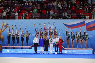 Церемония награждения финалистов международных соревнованиях по художественной гимнастике «Кубок сильнейших спортсменов» во Дворце гимнастики Ирины Винер в олимпийском комплексе «Лужники».