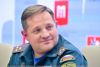 Заместитель начальника Главного Управления – начальник Управления надзорной деятельности и профилактической работы Главного управления МЧС России по г. Москве Александр Бобров. Пресс-конференция на тему «Новый учебный год: акцент на детской безопасности».